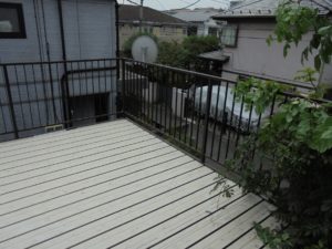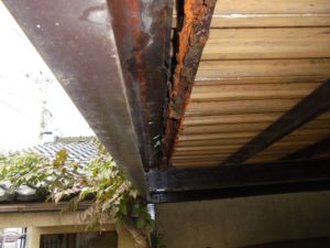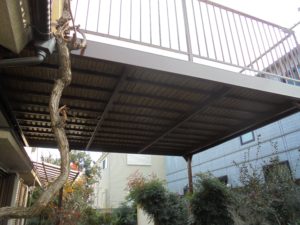 見た目も強度も綺麗に蘇りました!これで人がのっても安心です。腐食の原因は、雨樋にたまった雨水が原因でしたので、雨樋の補修も行いました。