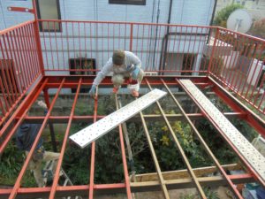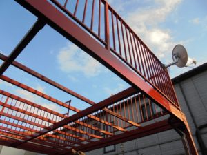 同時に腐食していた鉄骨を撤去して、新しい鉄骨を組み立てていきます。