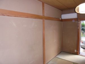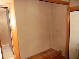 こちらはオーナー様の希望で、砂壁からクロス壁に変更することが決定しました。仕上がりはパッと明るくなるはずです。