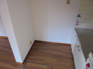 リビングダイニングは老朽化が進み、床材も古いフローリング材で劣化しておりました。クロス張替は勿論、床も解体して、比較的安価に抑えられるクッションフロア仕上げをご提案いたしました。
